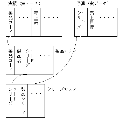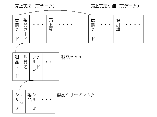 実データテーブルが複数に分割(売上実績と売上実績明細など)されている。