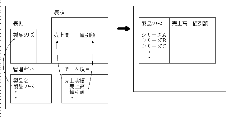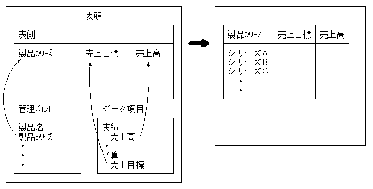 予算(製品シリーズ別の売上目標など)と実績(製品ごとの売上実績など)が別のテーブルにある場合は、単純な結合処理では正しい結果が得られません。複数のテーブルのデータに、共通の管理ポイント(製品シリーズなど)を適用して集計・加工し、その結果をマージします。