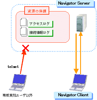 ここでは、Navigator Serverの専用実効ユーザを利用して、以下の重要な資源を保護する方法を説明します。