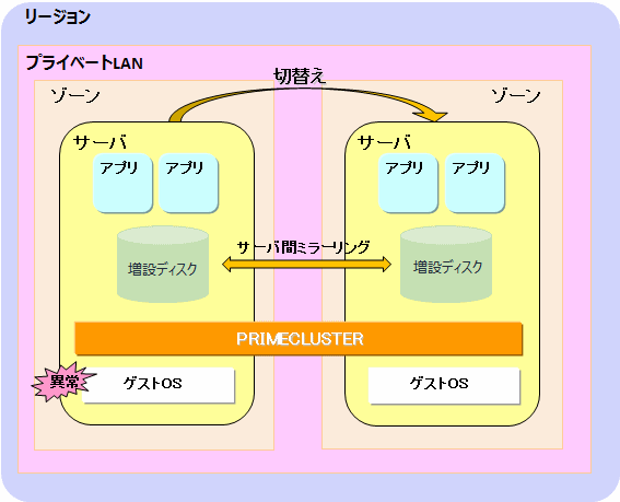また、ゾーン全域のネットワーク障害や、大規模災害によりゾーンが異常となった場合、少ない操作で待機系へフェイルオーバさせることにより迅速に業務を復旧させることもできます。