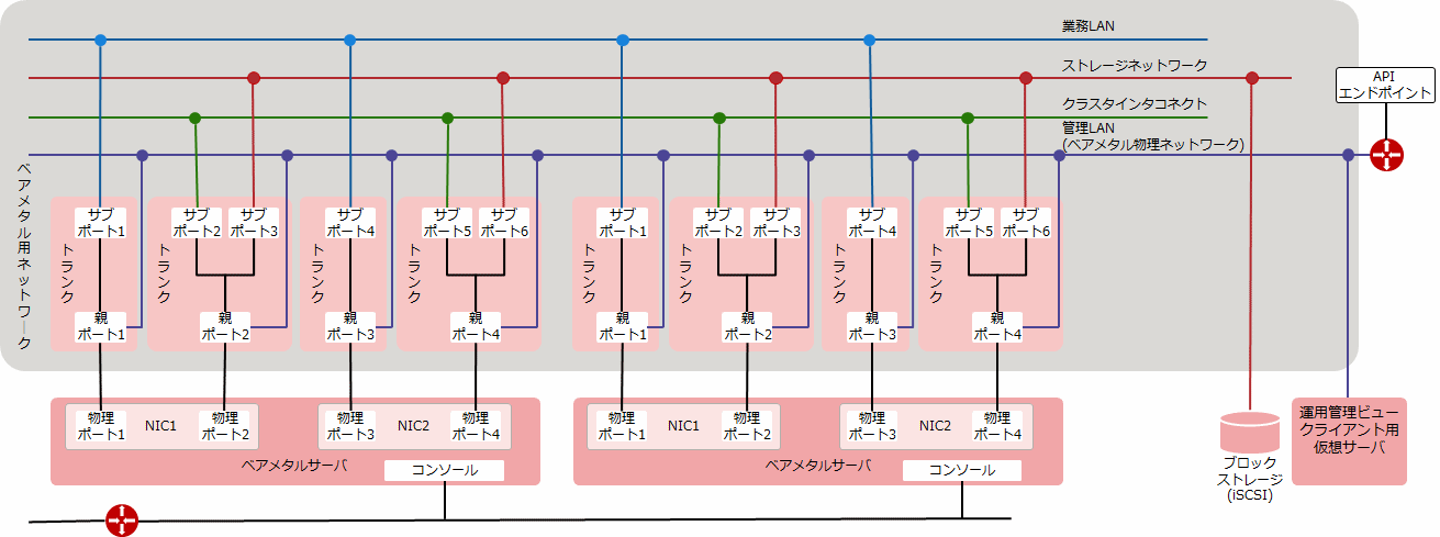 “ベアメタルサービス構築ガイド”を参照して、以下のネットワーク構成でベアメタルサーバおよび、ネットワーク環境を構築します。