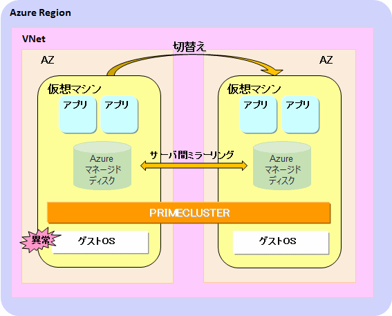 本構成では、複数のアベイラビリティゾーン上でクラスタシステムを動作させることができます。