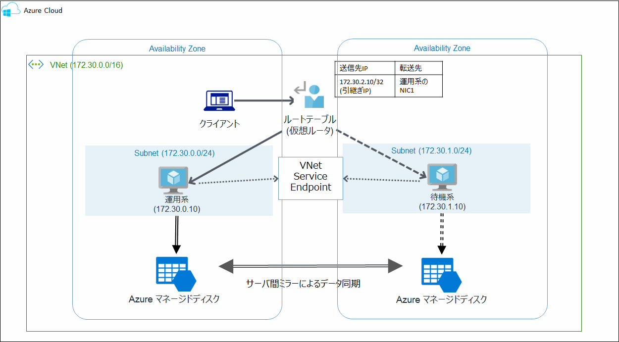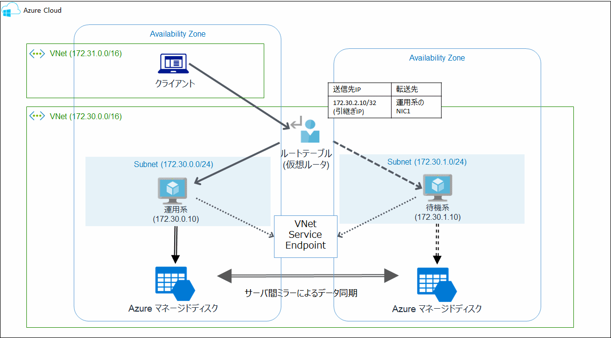 図27.1 仮想ルータによるネットワーク引継ぎ(VNet内クライアントの場合)