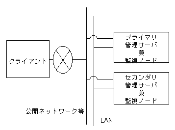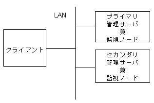 管理サーバと監視ノードが兼用し、クライアントが独立するモデルです。