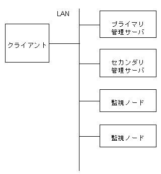 監視ノード、管理サーバ、およびクライアントを1つのノードで兼用する形態です。