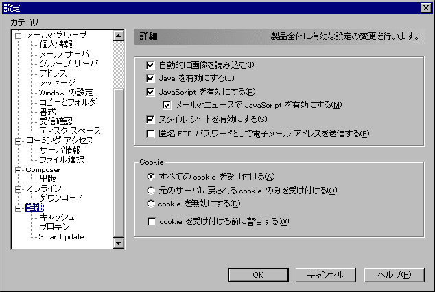 ここでは、Netscape Navigatorにおける設定方法を示します。