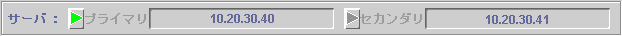 切替えボタンには、現在、動作中のプライマリ管理サーバ、およびセカンダリ管理サーバのIPアドレスが表示され、緑色のマークで表示されている管理サーバが、現在、クライアントから接続している管理サーバを表しています。