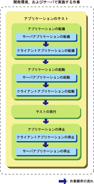 本章では、開発したサーバアプリケーションをテスト環境の同期アプリケーション連携実行基盤に配備して、テストを行うための手順について説明します。